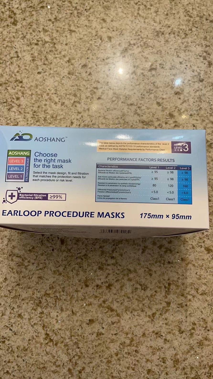 Aoshang 奥上 医用三级平面口罩蓝色50片盒装