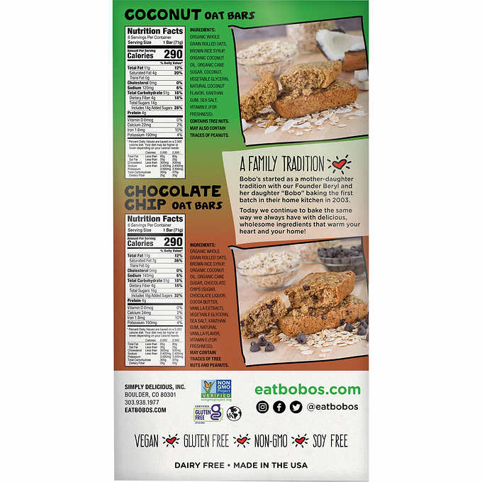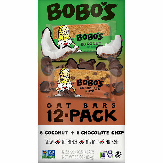 Bobo's Oat Bites 燕麦棒,巧克力片和椰子口味,70.8g/包,12包装