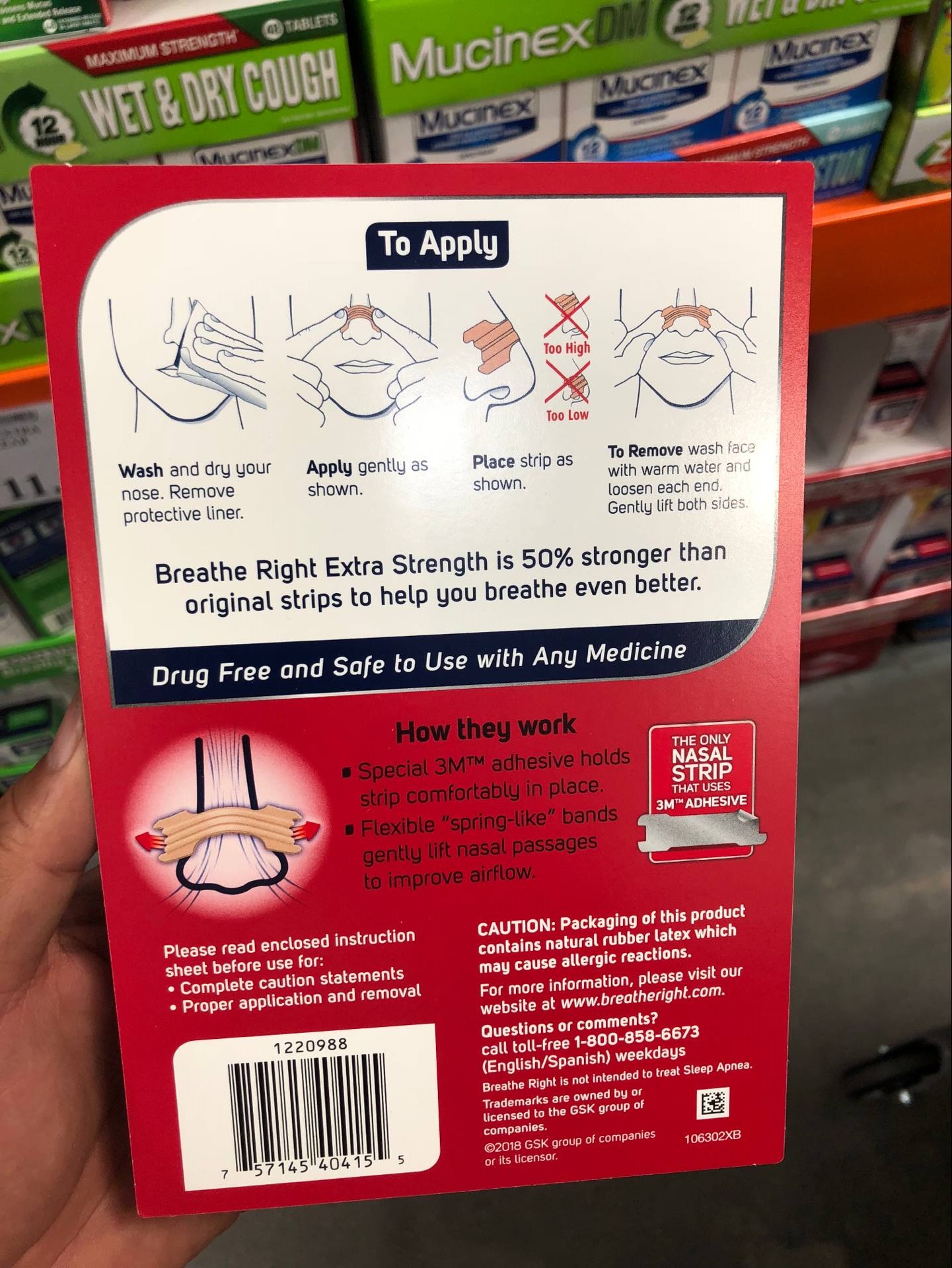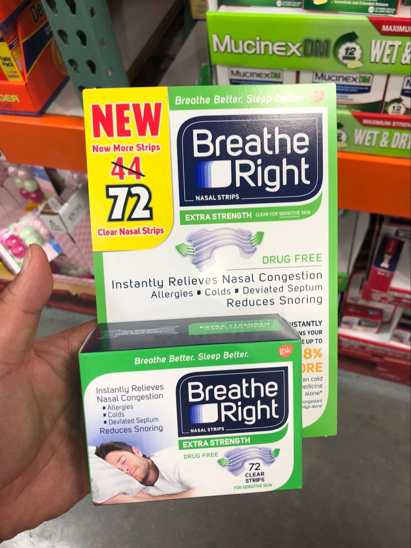 72片装, 透明贴条。适合敏感的皮肤。单一尺码适用于所有成人。相比普通型增强50%,能更好畅通呼吸。适用于因感冒,(花粉等)过敏或是鼻中隔偏曲引起的鼻塞;可以有效舒缓因鼻塞而引致的鼻鼾(打呼噜)。