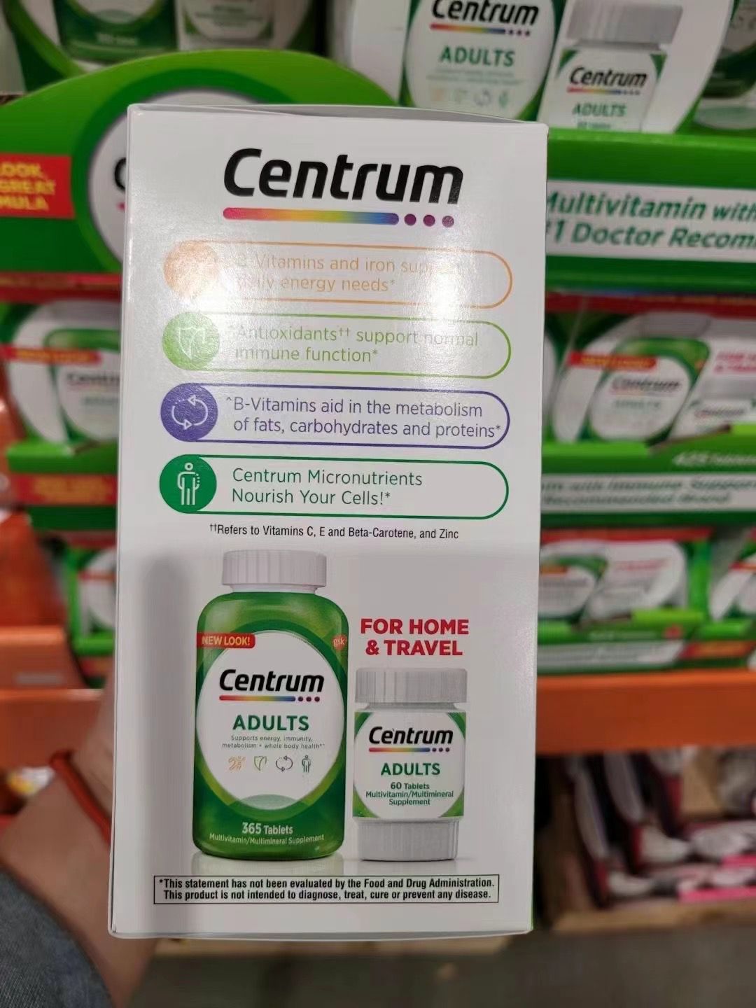 Centrum? Adults applies the latest nutritional science to bring you a complete multivitamin that includes key essential nutrients people don't get enough of from food alone. Centrum?Adults has our highest levels of Vitamin D3,? a preferred source of Vitamin D. Centrum?Adults also has key nutrients to help support your energy,? immunity,^ and metabolism.?