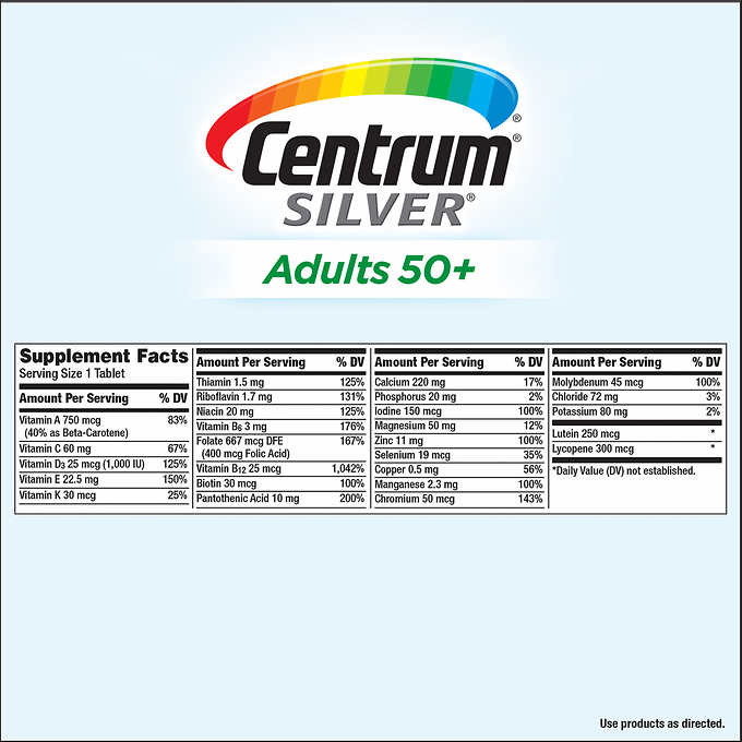 Centrum? Silver? Adults applies the latest nutritional science to bring you an age-adjusted multivitamin with a broad spectrum of nutrients that help support the health of adults 50 . Centrum? Silver? has our highest levels of Vitamin D3?, a preferred source of Vitamin D.
