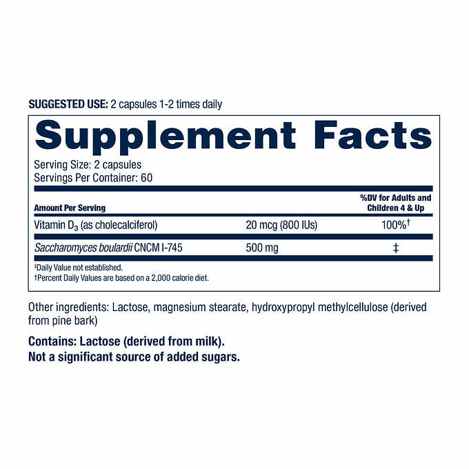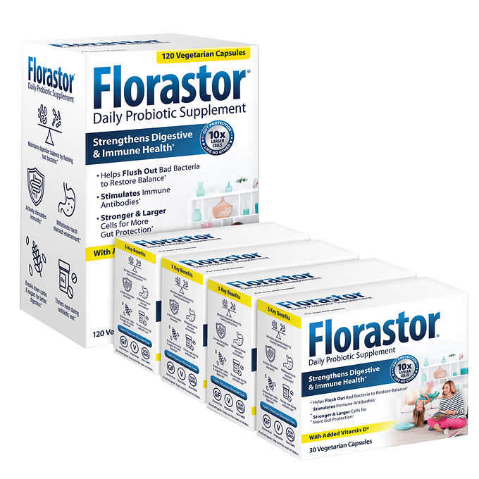 Florastor每日益生菌与维生素D3, 120素食胶囊