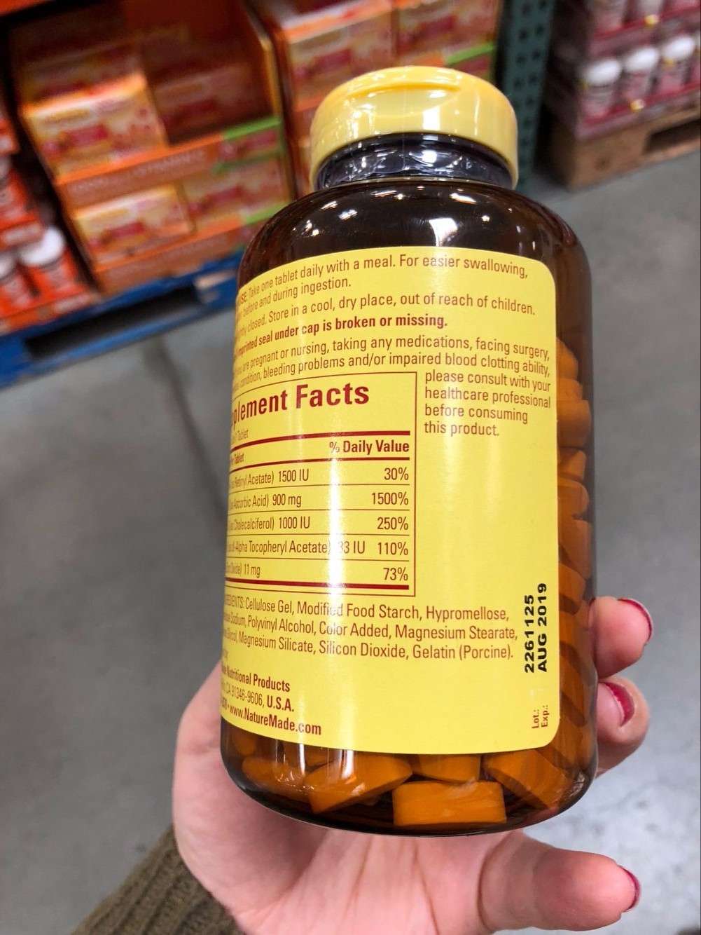 Vitamin D 1000 IU, Vitamin E 33 IU, Vitamin A 1,500 IU