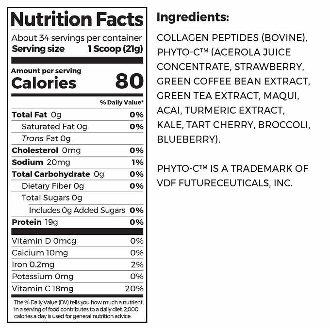 每份胶原蛋白含有20克草饲胶原蛋白,可以滋养头发、皮肤、指甲和关节。丰富的维生素C可以增强你的免疫系统,促进胶原蛋白的吸收和合成。本产品不用于诊断、治疗、治愈或预防疾病。