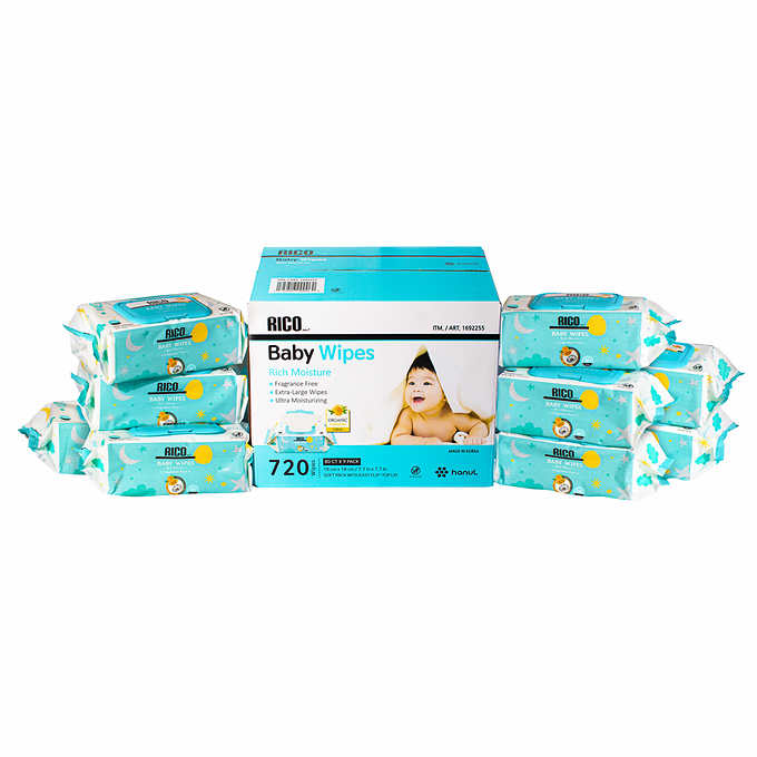 包含9个续装80支无香味婴儿湿巾(共720支) ,湿巾含超纯纯水和法国水霜。丰富的金盏花油作为软化剂对婴儿的皮肤不产生刺激。不含香料、苯甲酸酯、酒精、染料和单质氯。软续杯包配有容易翻转的盖子。