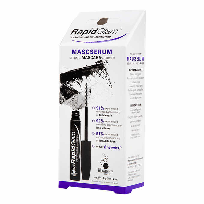 RapidGlam?,世界上第一款睫毛增强精华液;完美平衡的RapidLash?睫毛增强精华液和光滑的纤维注入底漆和睫毛膏。RapidGlam??可以瞬间放大您的睫毛,并在短短的3-4周内,为您的睫毛提供护发、加固、卷曲和提升的效果,让您的睫毛更浓密、更长。无结块的黑色颜料使用独特的刷子,平滑地分离和定义每个睫毛,使它们浸透在强烈的黑色。纤维增强并增加体积,使它们在更少的涂层中从优雅变成电动。RapidGlam?不仅仅是两个世界的优点,它是两个世界结合在一起。把你的大睫毛调大一点!