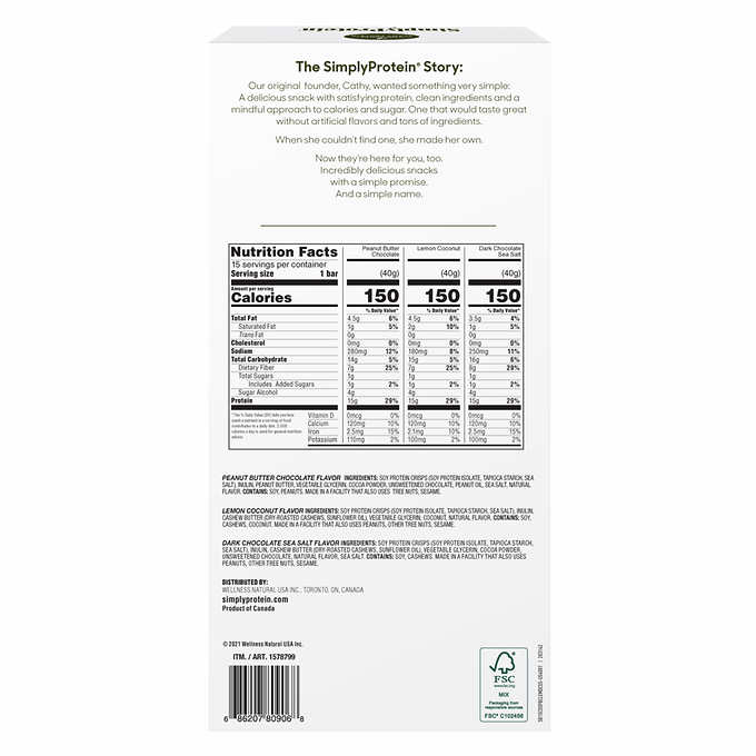 Simply Protein 简单的蛋白质棒,多种包装,40g/根,15根装
