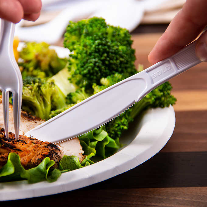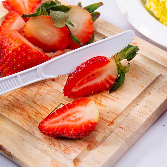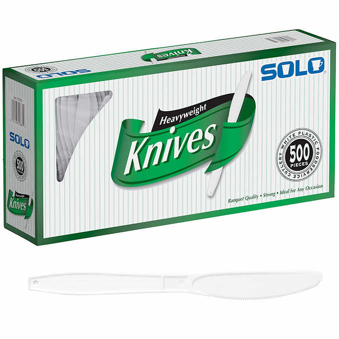 规格:7英寸*500个/盒。Solo塑料刀由聚苯乙烯塑料制成,在保持实用性的同时具备不锈钢餐具的质感。