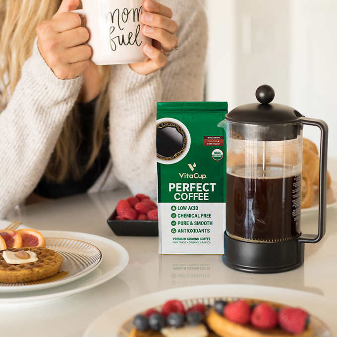 VitaCup 低酸完美研磨咖啡,美国农业部有机,深度烘焙,3包(每包284g)