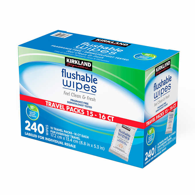 柯克兰签名可冲洗湿巾旅行包,无味,240片装