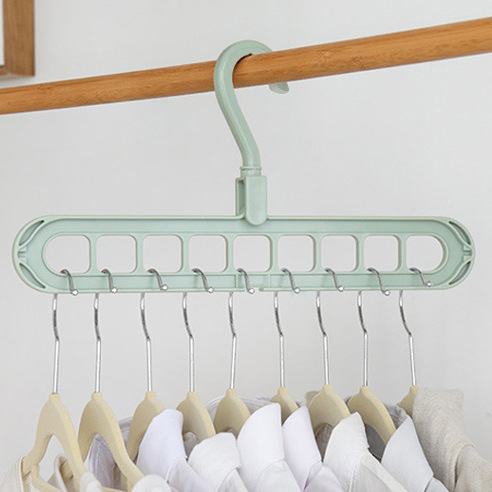 亚美 T多功能九孔衣架收纳神器折叠收缩魔术旋转挂衣架
