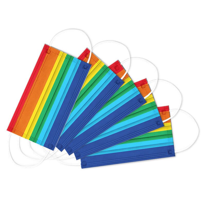 亚美 彩虹印花成人一次性平面口罩10片/包