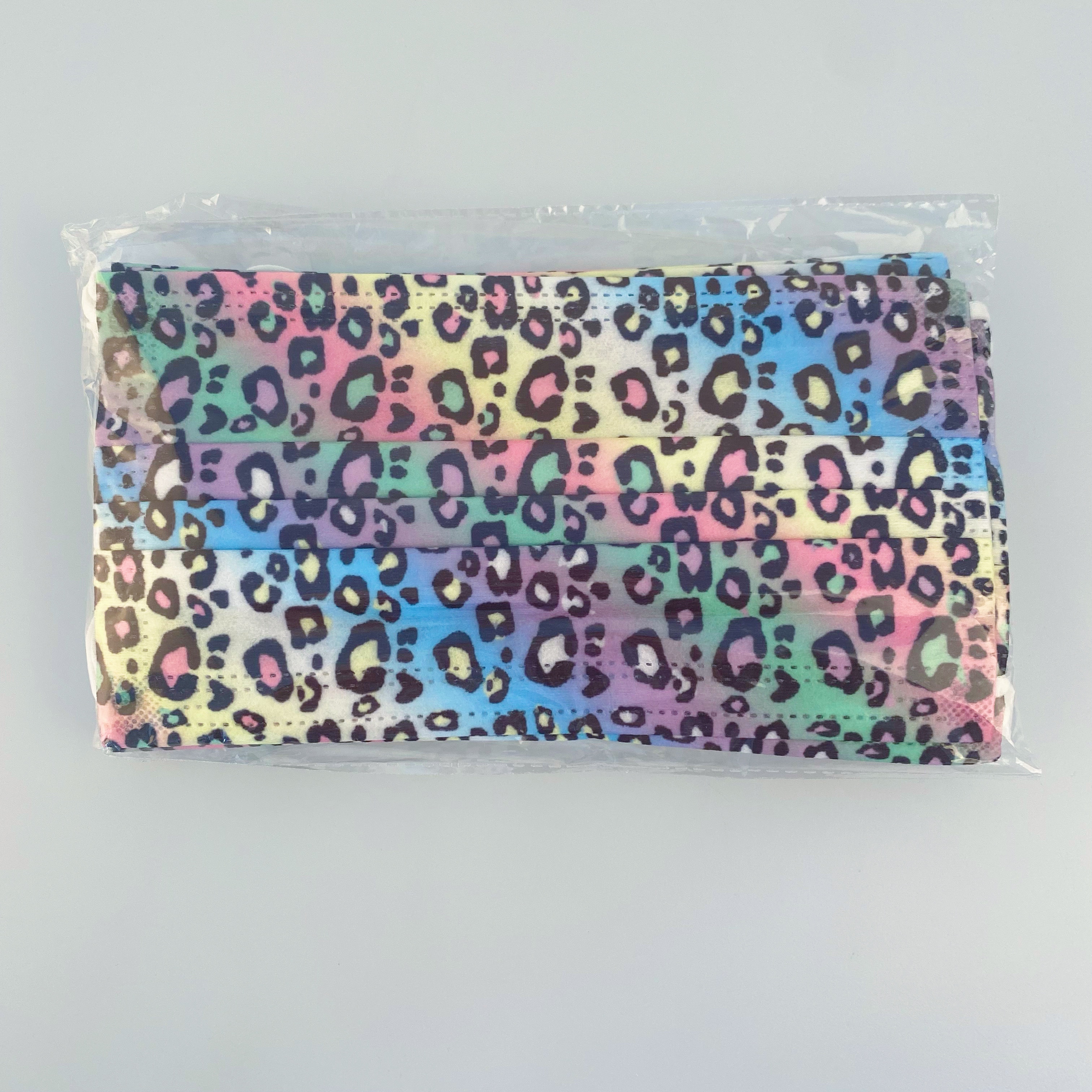 亚美 潮牌豹纹印花成人一次性平面口罩;炫彩豹纹款式