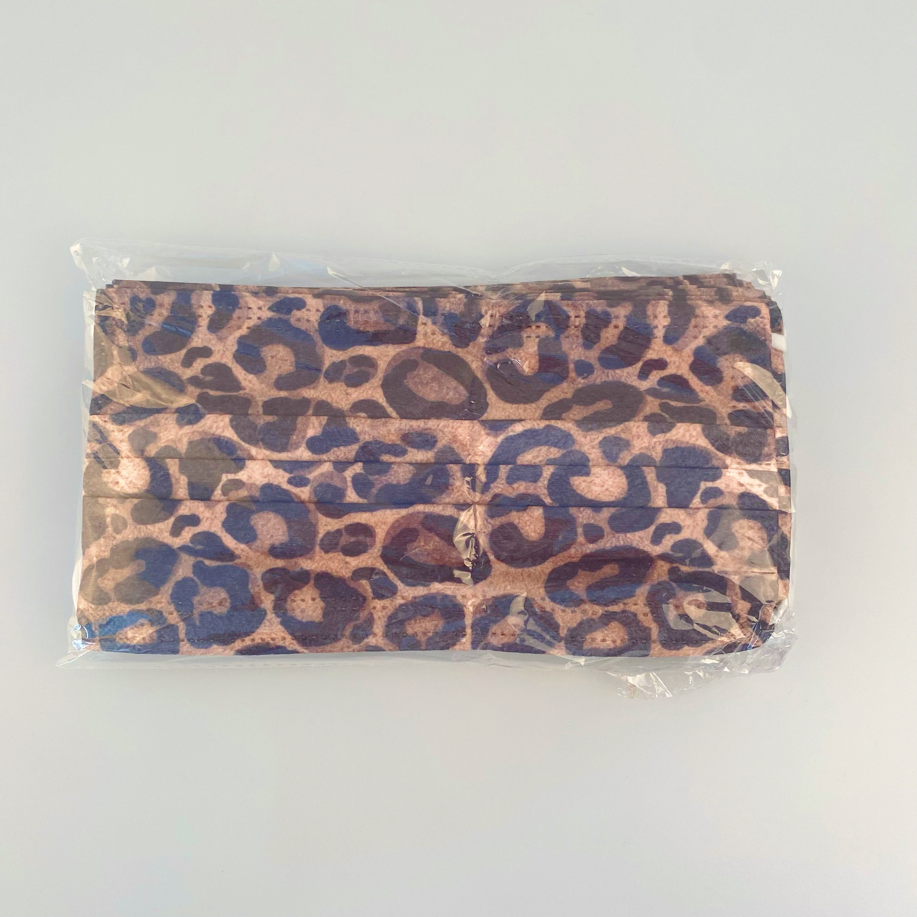 亚美 潮牌豹纹印花成人一次性平面口罩;棕色豹纹款式