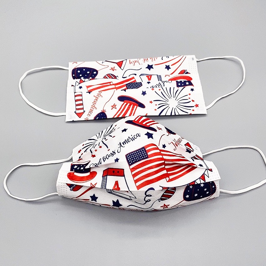 亚美 独立日美国国旗印花成人一次性平面口罩;A款式