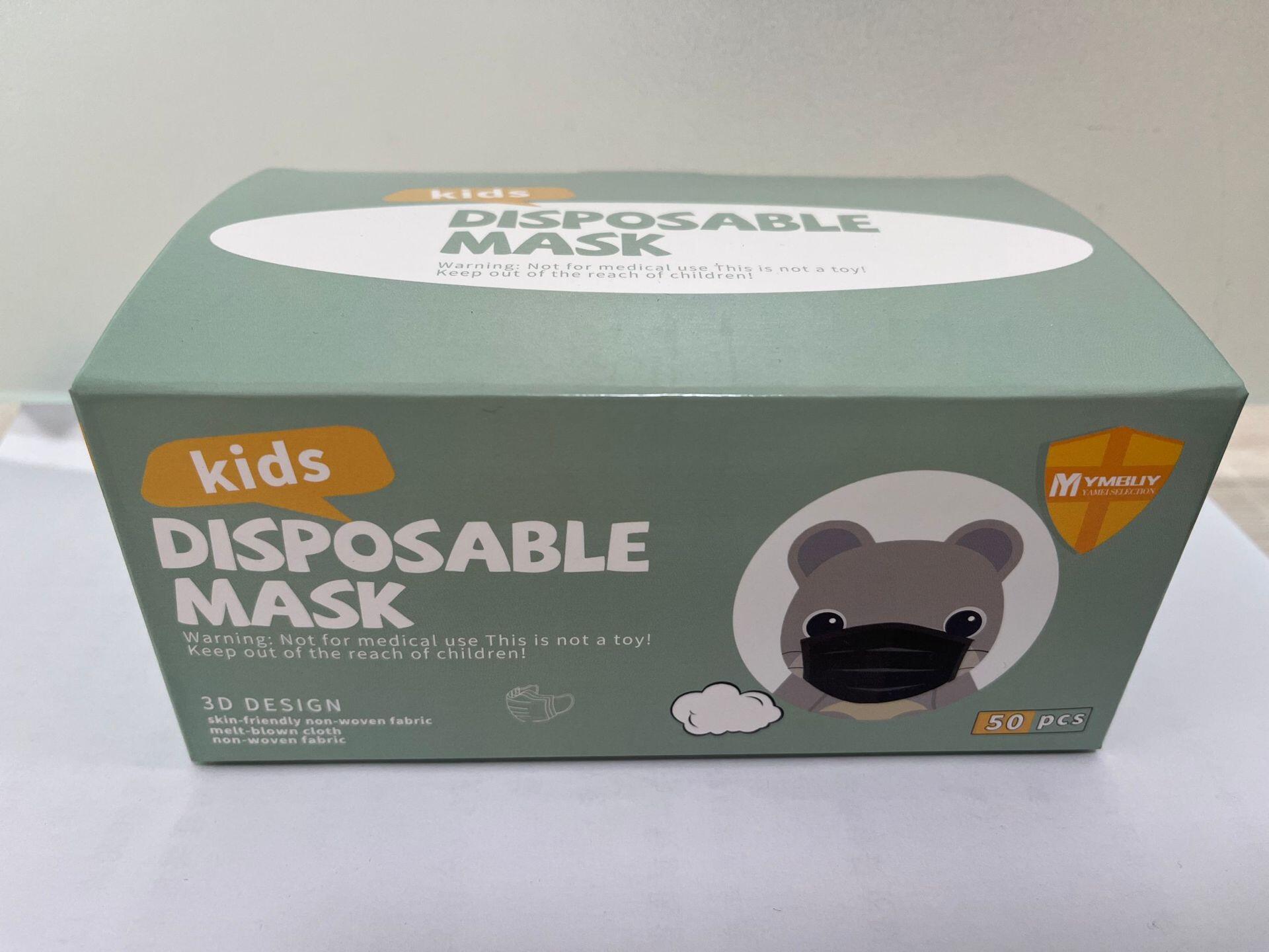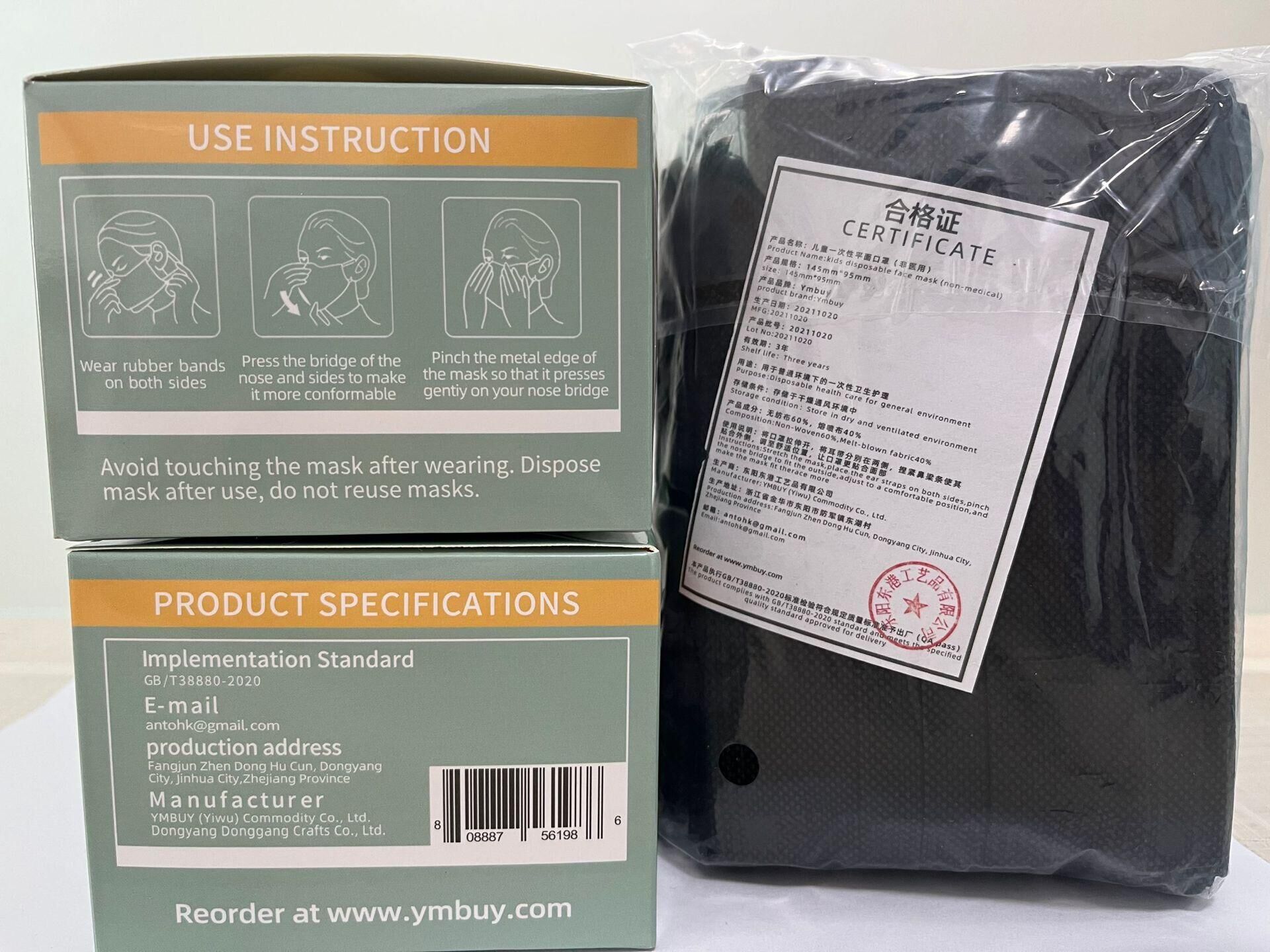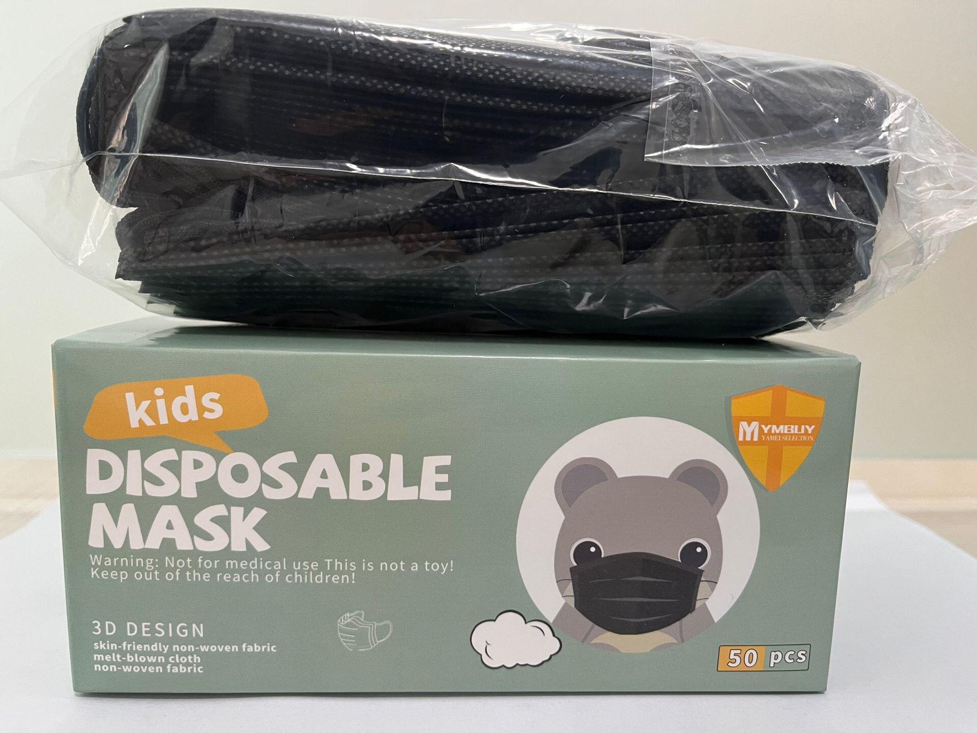 亚美 儿童黑色平面口罩 三层防护 50/100/200/500/1000/2000片装