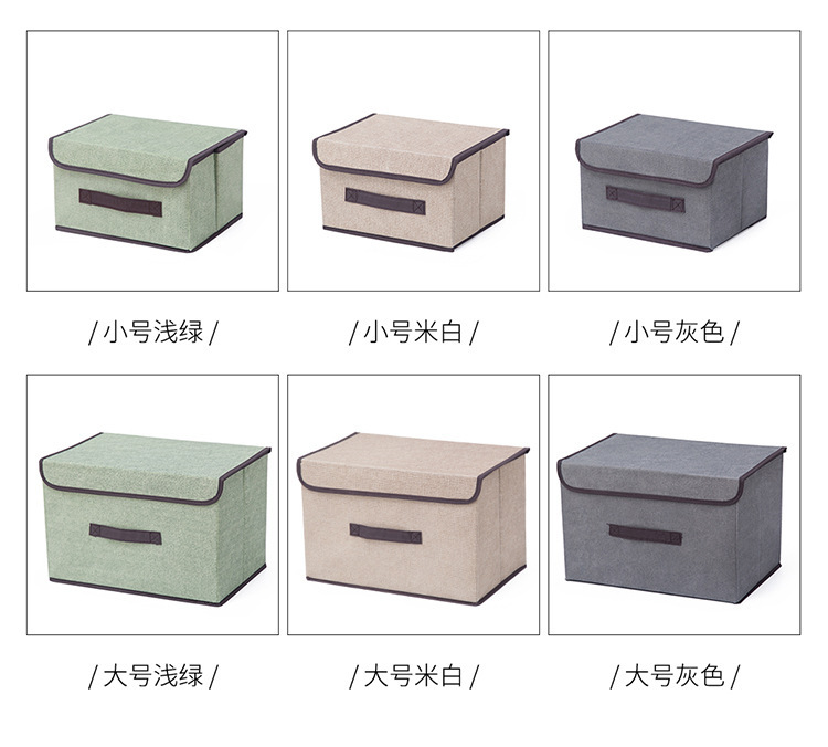 亚美 仿麻无纺布艺可折叠衣物收纳箱米白