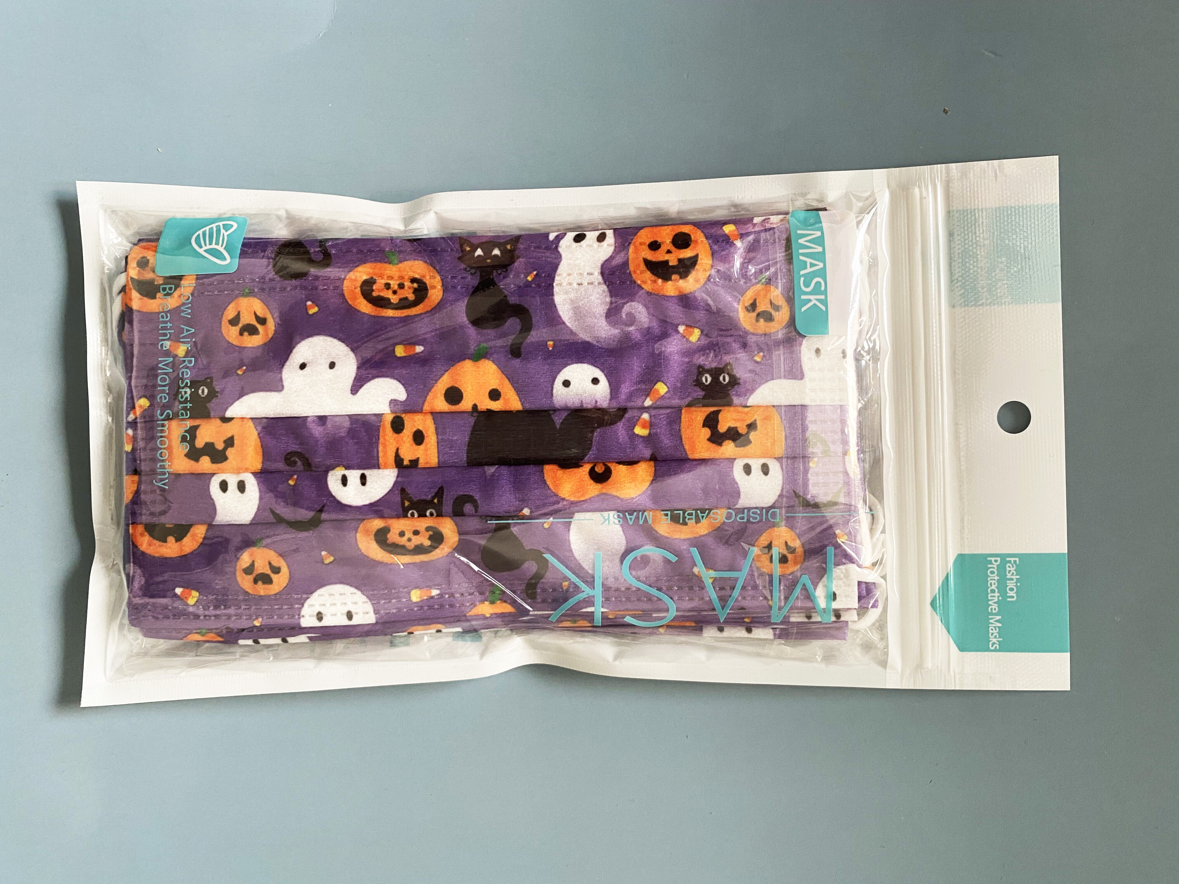 亚美 万圣节印花一次性口罩三层防护 成人款;10片装