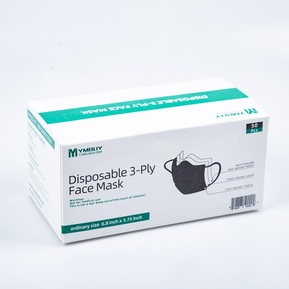 亚美 一次性民用口罩三层挂耳式平面口罩 50个装 黑色
