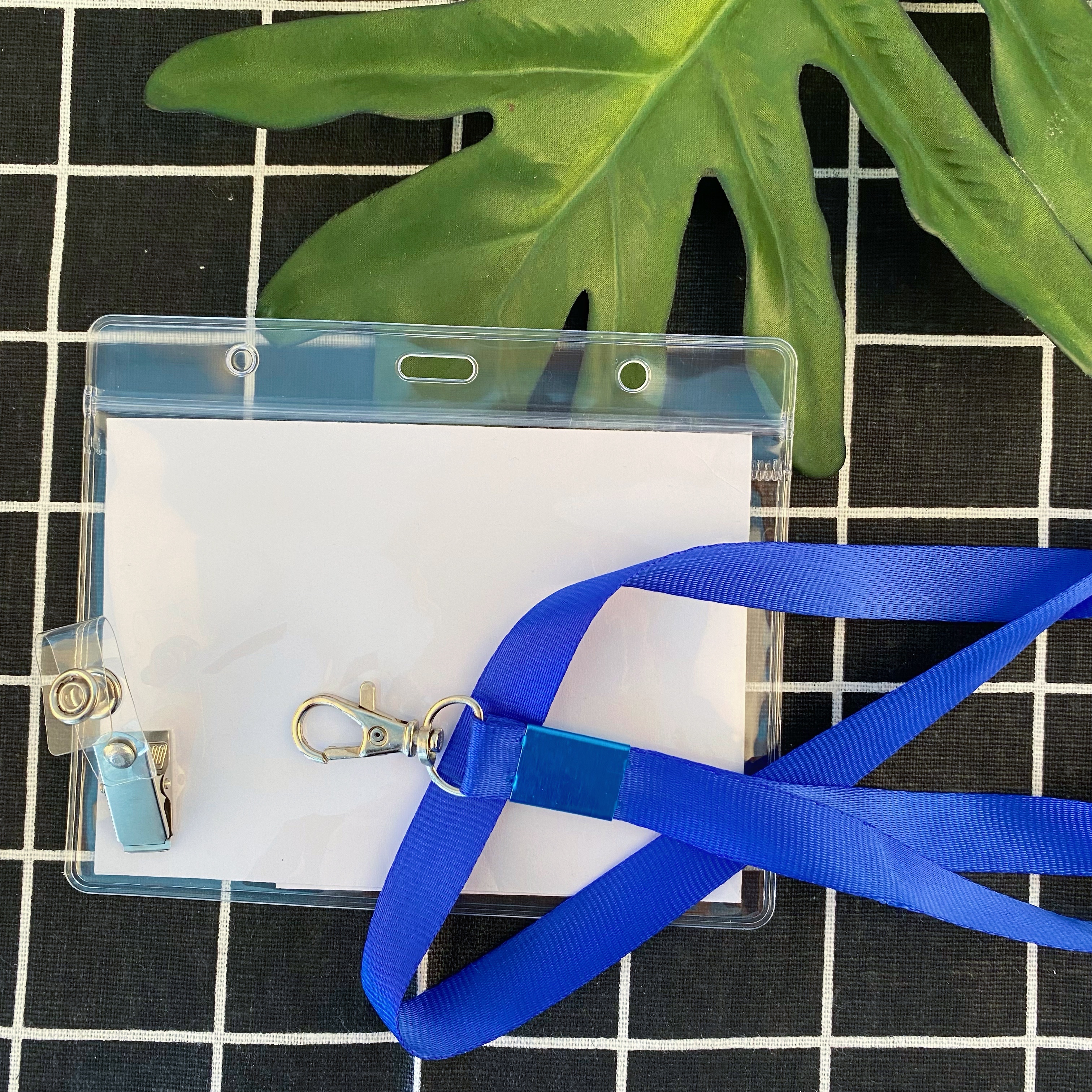 产品包括透明卡套、挂绳、卡夹三件套,卡套是防水防油的pvc材质,配套的挂绳和卡夹可挂脖可夹在衣服上,并有多种尺寸可供选择,可用于疫苗接种证明、工作证、学生证以及会展证明等。
