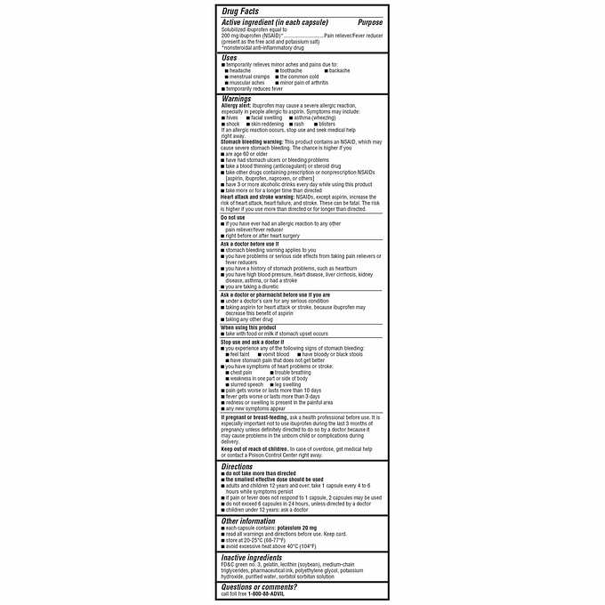 雅维液体凝胶能提供快速缓解,在你最需要它的地方。这些液体胶囊在几分钟内就能有效缓解头痛、背痛、肌肉酸痛、牙痛、轻微关节炎和其他关节疼痛,以及普通感冒引起的各种疼痛。雅维液体凝胶可以抵抗炎症部位的疼痛。这种退热镇痛药是专为成人设计的快速吸收,提供数小时的疼痛缓解。每个胶囊含有2mg的布洛芬,这是一种已经溶解的非甾体抗炎药(NSAID),用于缓解头痛、背痛、经期疼痛、关节疼痛和轻微关节炎疼痛。